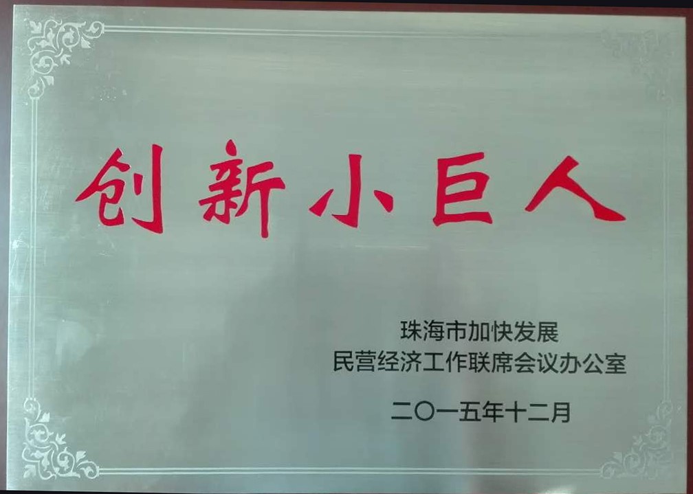 2016年7月29日,珠海市隆重召開(kāi)了“珠海市民營(yíng)經(jīng)濟(jì)工作會(huì)議”,我公司作為珠海市重點(diǎn)民營(yíng)企業(yè),派代表參加了會(huì)議。會(huì)上對(duì)獲得“創(chuàng)新小巨人”稱(chēng)號(hào)的企業(yè)進(jìn)行了授牌儀式,我司被評(píng)為“創(chuàng)新小巨人”,上臺(tái)接受了由市委、市政府領(lǐng)導(dǎo)頒發(fā)的獎(jiǎng)牌。