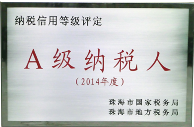 從珠海市國家稅務局網站獲悉,2015年4月29日珠海市國家稅務局公布了2014年度被評為A級納稅人的企業名單。珠海博威電氣有限公司榜上有名。這標志著我公司的規范化、標準化的管理和財務運作正式得到權威部門的進一步認可。